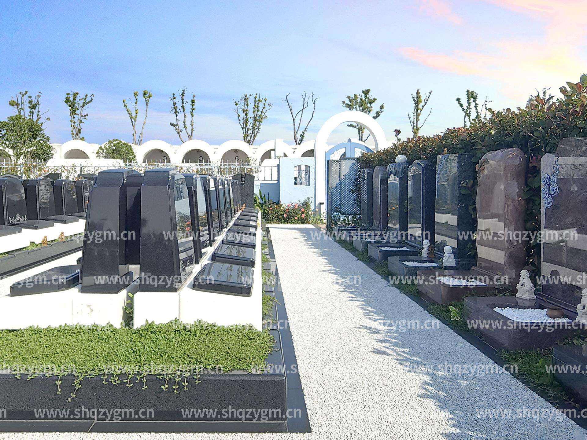 西式墓型设计以其简洁典雅的美学气质,诠释着永恒之美的精神内核。每一方碑石皆以精工雕琢、线条流畅、造型雅致,既凝练着西方艺术精髓,又暗含东方人文理念的对话。碑体之上的铭文纹饰,不仅是个人生命历程的镌刻,更是对存在本质的静默叩问。这些如雕塑般的纪念碑,以谦逊姿态与天地共生,在光影流转间演绎着生与死的哲学图景。